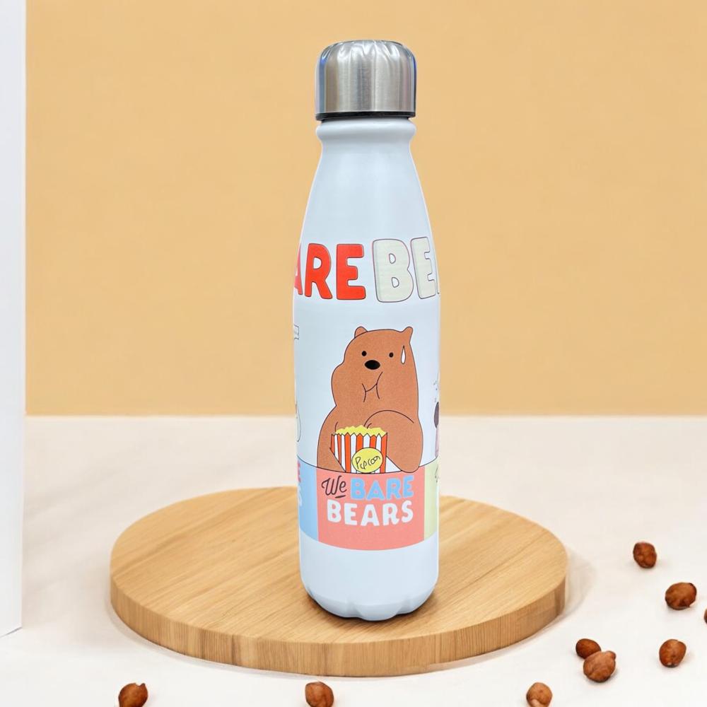 قارورة We Bare Bears بلون رمادي أنيق وتصميم شخصيات الدببة اللطيفة برسومات متنوعة ومبهجة – مثالية للاستخدام اليومي.